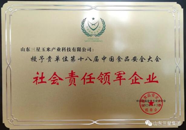 作為中國高端健康廚房食品標(biāo)桿企業(yè),憑借在食品安全、科技創(chuàng)新等方面的突出成績,山東三星集團(tuán)再獲多項大獎,旗下玉米產(chǎn)業(yè)公司獲評社會責(zé)任領(lǐng)軍企業(yè)、2019—2020食品安全誠信單位、2019—2020食品安全管理創(chuàng)新二十佳案例,山東三星集團(tuán)總經(jīng)理王明星獲評社會責(zé)任優(yōu)秀企業(yè)家、食品安全普法先進(jìn)工作者。