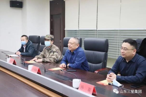 1月26日,鄒平市委常委、人武部部長胡燕龍來山東三星集團(tuán)調(diào)研企業(yè)民兵編組活動。山東三星集團(tuán)董事長王明峰、副總經(jīng)理孫喜接待調(diào)研領(lǐng)導(dǎo)。