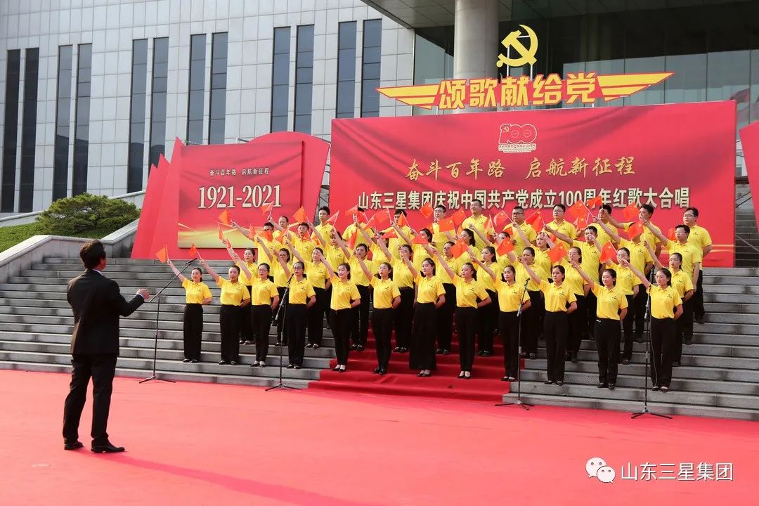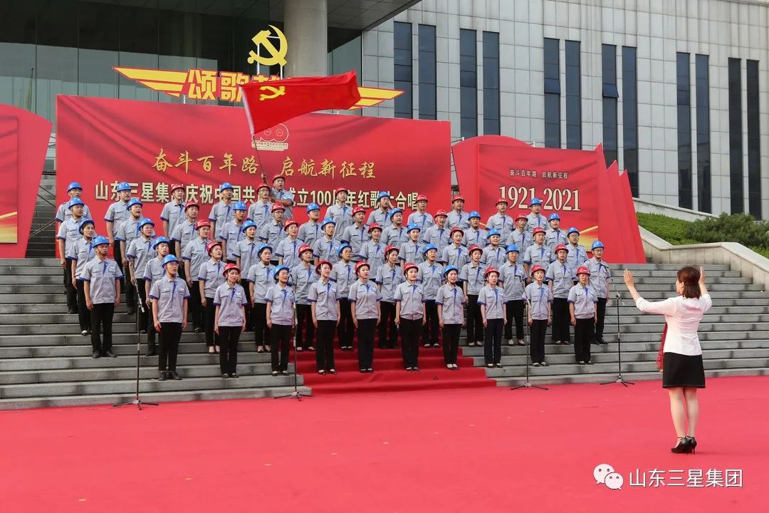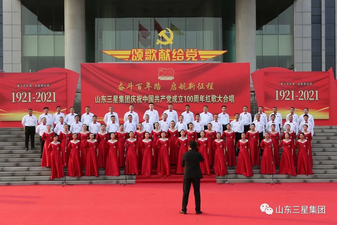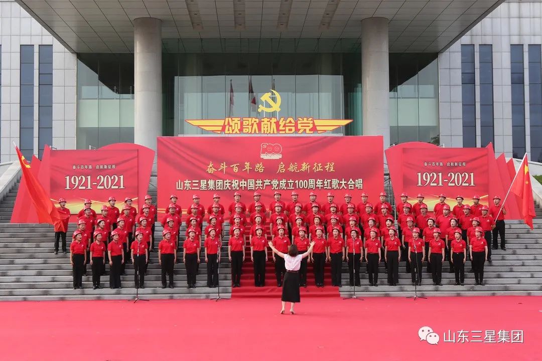 為慶祝中國(guó)共產(chǎn)黨成立100周年,深化黨史學(xué)習(xí)教育和企業(yè)精神文明建設(shè),進(jìn)一步激發(fā)廣大干部員工愛(ài)黨愛(ài)國(guó)熱情,賡續(xù)共產(chǎn)黨員精神血脈,弘揚(yáng)愛(ài)崗敬業(yè)實(shí)干作風(fēng),6月26日,山東三星集團(tuán)唱紅歌、頌黨恩,學(xué)黨史、銘初心,組織開(kāi)展“奮斗百年路 啟航新征程”山東三星集團(tuán)慶祝中國(guó)共產(chǎn)黨成立100周年紅歌大合唱活動(dòng),用嘹亮歌聲表達(dá)對(duì)黨的無(wú)限敬仰,抒發(fā)對(duì)祖國(guó)的無(wú)限熱愛(ài)。