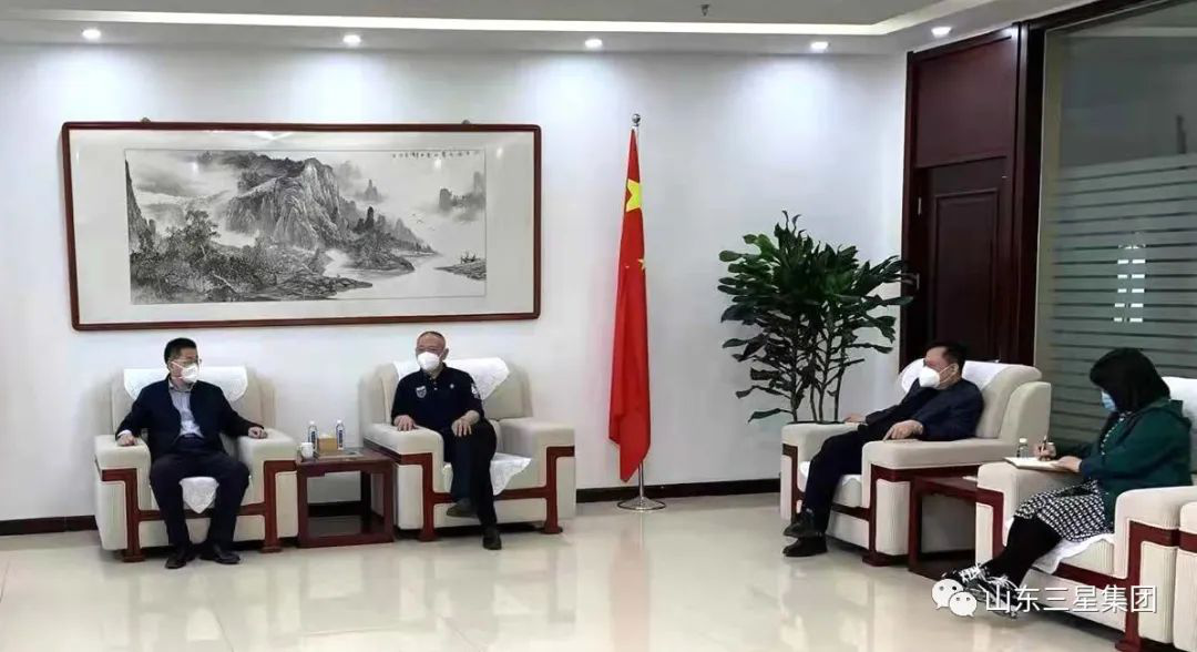 4月5日,鄒平市委常委、宣傳部長,副市長商獻(xiàn)文到山東三星集團(tuán)調(diào)研企業(yè)疫情防控及生產(chǎn)經(jīng)營工作情況。韓店鎮(zhèn)黨委書記邢錦凱陪同活動,山東三星集團(tuán)黨總支書記、老董事長王明峰,董事長、總裁王亞群,總經(jīng)理王明星參加調(diào)研座談。