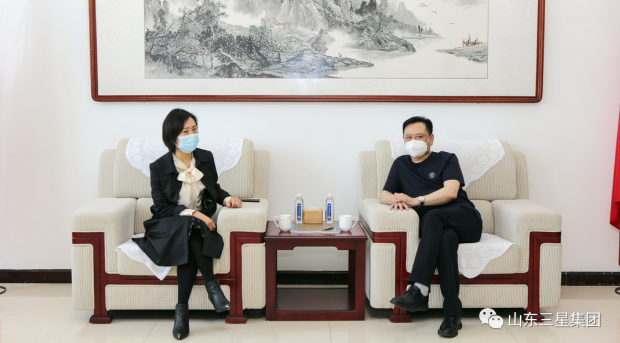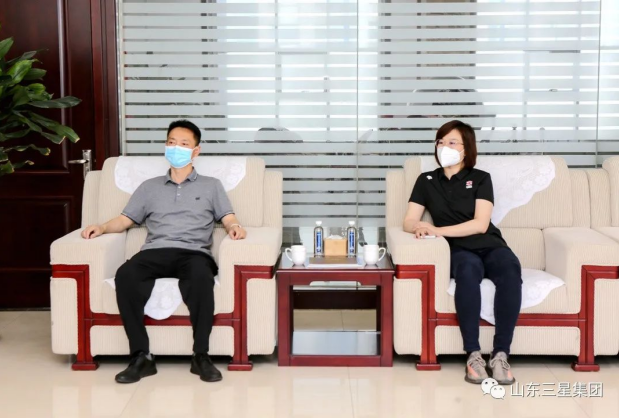4月10日,鄒平市委常委、統(tǒng)戰(zhàn)部部長張欣來山東三星集團調研疫情防控及生產經營情況。韓店鎮(zhèn)黨委書記邢錦凱,鎮(zhèn)黨委宣傳委員、統(tǒng)戰(zhàn)委員李寧陪同調研。山東三星集團董事長、總裁王亞群,總經理王明星、常務副總經理王明亮參加調研座談。