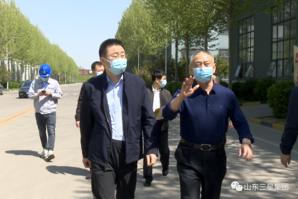 4月16日,鄒平市委常委、宣傳部長,副市長商獻文來山東三星集團調(diào)研重點項目建設情況,韓店鎮(zhèn)黨委書記邢錦凱陪同調(diào)研。山東三星集團黨總支書記、老董事長王明峰,裕航合金公司總經(jīng)理王呈鋼接待調(diào)研領導一行。