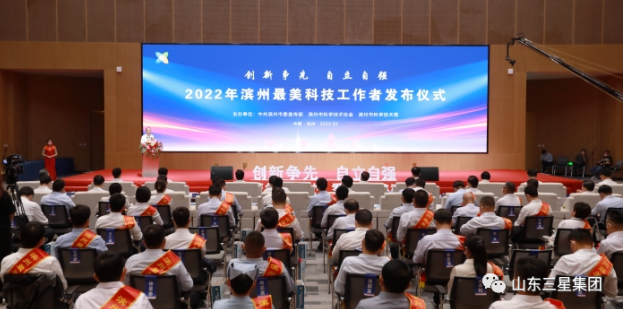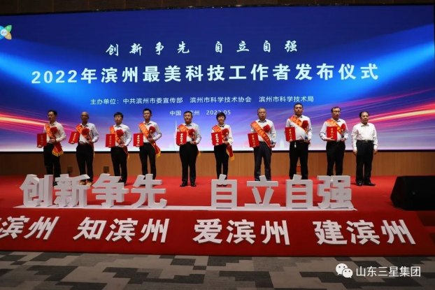 發(fā)布儀式上,秦維強(qiáng)、宋永祥分別為“濱州市金獅獎(jiǎng)企業(yè)最美科技工作者”頒獎(jiǎng)。山東三星集團(tuán)旗下裕航合金公司副總經(jīng)理房濤榮獲濱州市金獅獎(jiǎng)企業(yè)最美科技工作者榮譽(yù)稱號(hào)。