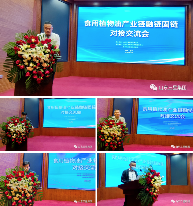 為進(jìn)一步推動(dòng)產(chǎn)業(yè)鏈融通創(chuàng)新、促進(jìn)大中小企業(yè)協(xié)同發(fā)展,9月28日,由山東三星集團(tuán)主辦,濱州市民營經(jīng)濟(jì)發(fā)展服務(wù)中心、鄒平市工業(yè)和信息化局指導(dǎo)的食用植物油產(chǎn)業(yè)鏈融鏈固鏈對(duì)接交流會(huì)在山東鄒平召開。