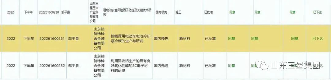 日前,山東省工業(yè)和信息化廳公布“2022年山東省第二批技術(shù)創(chuàng)新項(xiàng)目計(jì)劃”名單。山東三星集團(tuán)“植物油安全風(fēng)險(xiǎn)因子防控及關(guān)鍵技術(shù)研究”“新能源用電動(dòng)車電池冷卻液冷板的生產(chǎn)與研發(fā)”“利用回收鋁生產(chǎn)的具有良好氧化性能的3C電子材料的研發(fā)”三大項(xiàng)目成功入選。至此,該集團(tuán)已有11個(gè)項(xiàng)目入選省2022年技術(shù)創(chuàng)新項(xiàng)目計(jì)劃,技術(shù)成果均達(dá)到國內(nèi)領(lǐng)先水平。
