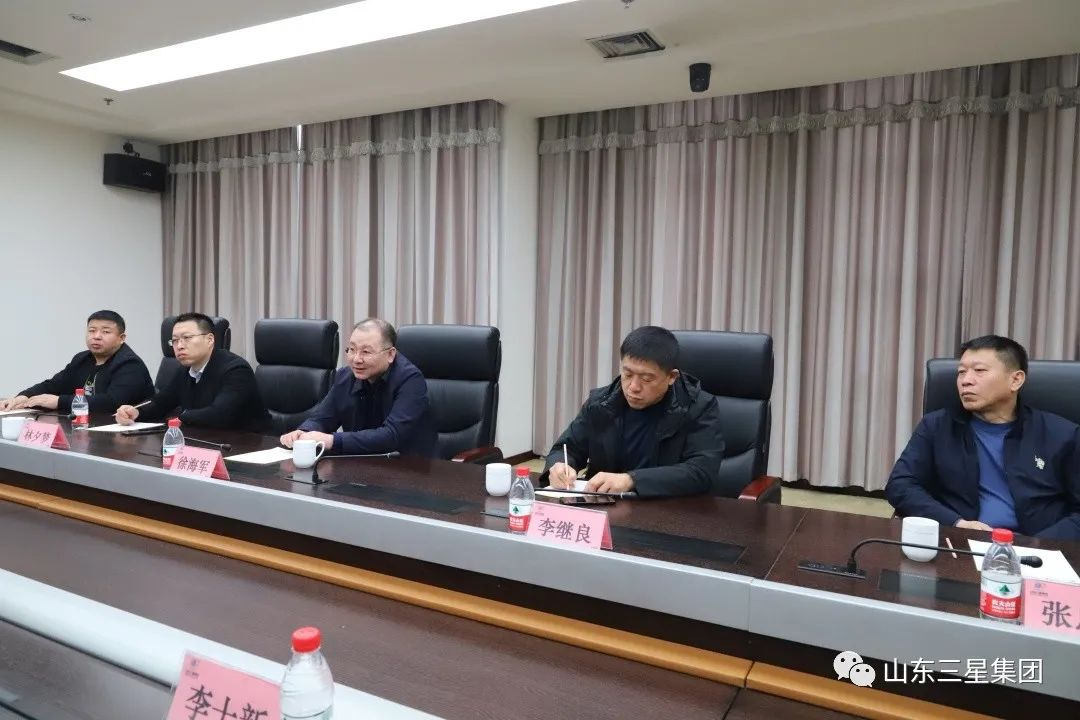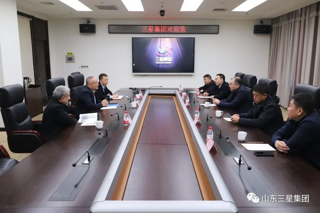 2月17日,吉林白城工業(yè)園區(qū)管委會副主任徐海軍一行來山東三星集團(tuán)交流座談。山東三星集團(tuán)黨總支書記王明峰、行政副總經(jīng)理韓延庭接待來訪領(lǐng)導(dǎo)。