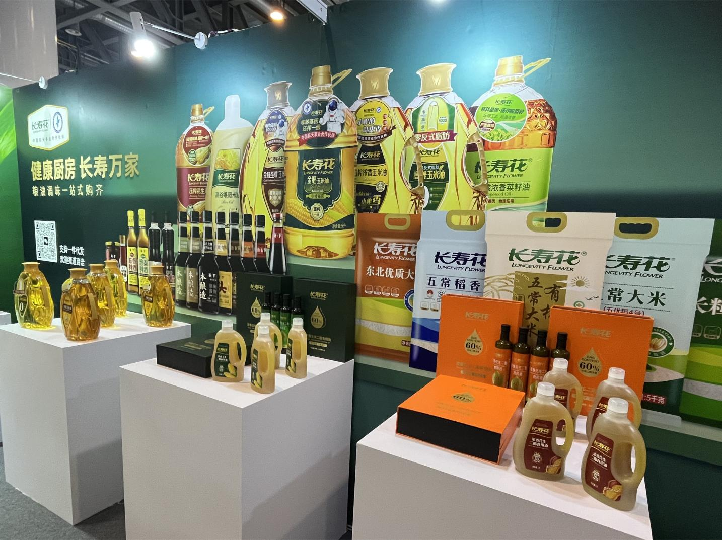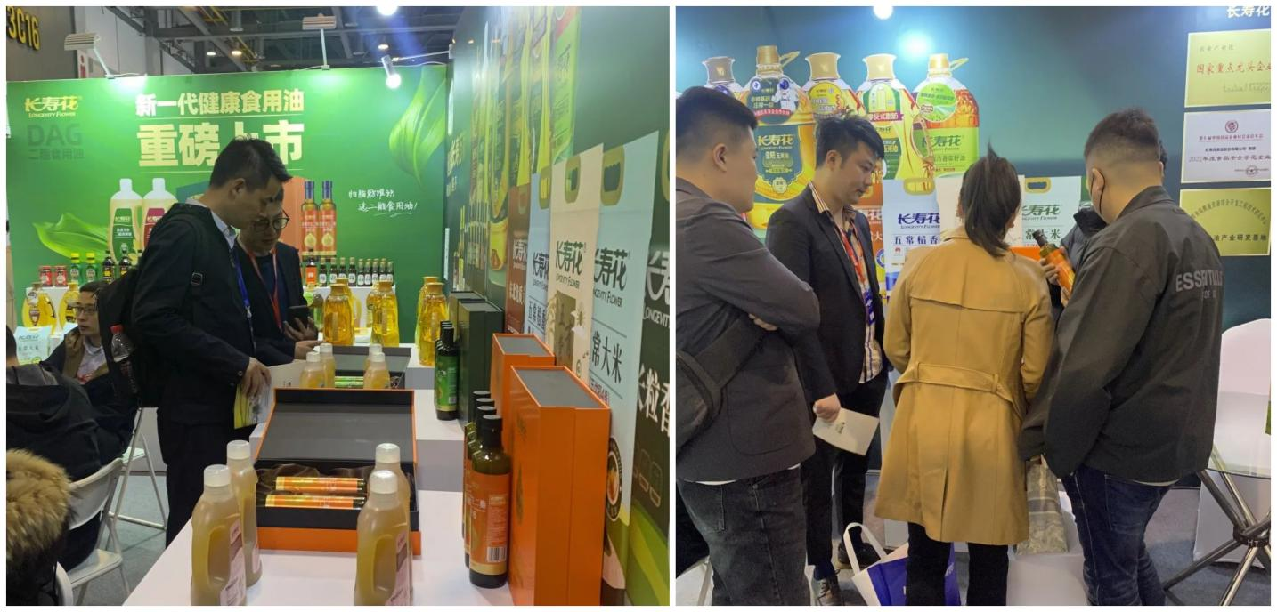 此次博覽會,作為糧油行業(yè)標(biāo)桿企業(yè)代表,長壽花食品攜二酯食用油、金胚玉米油、小榨濃香玉米油、零反式脂肪高養(yǎng)玉米油、高谷維稻米油等高端健康食用油系列、長壽花大米、面粉等糧食系列和箸下調(diào)味品系列產(chǎn)品亮相展會,戰(zhàn)略新品的全新亮相和優(yōu)質(zhì)產(chǎn)品的集中展出,受到與會來賓及客商的廣泛關(guān)注。