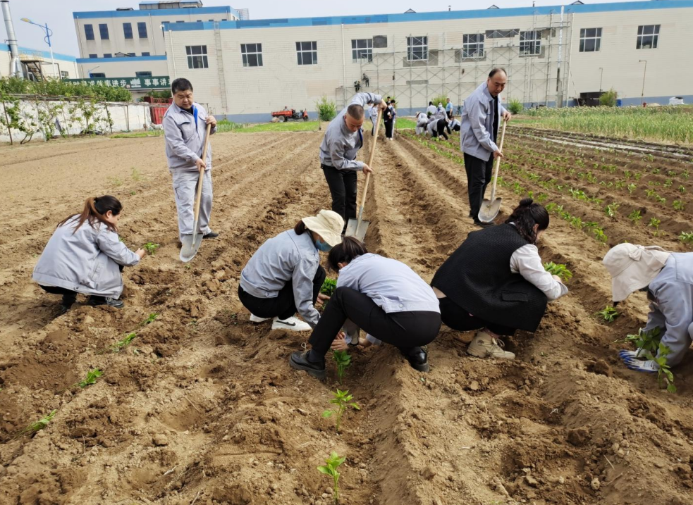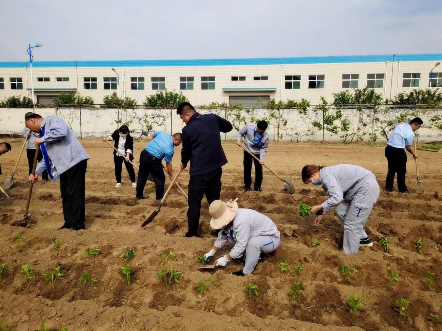 活動(dòng)中,大家興致勃勃,干勁十足,三人一組,五人一群,挖土、插苗、栽種、澆水,配合得井然有序,經(jīng)過(guò)一個(gè)多小時(shí)的努力,廠區(qū)空置土地發(fā)揮了價(jià)值,在綠色秧苗點(diǎn)綴下,一片生機(jī)勃勃。期待豐收季節(jié)的到來(lái),共享勞動(dòng)果實(shí),品鑒幸福滋味。
