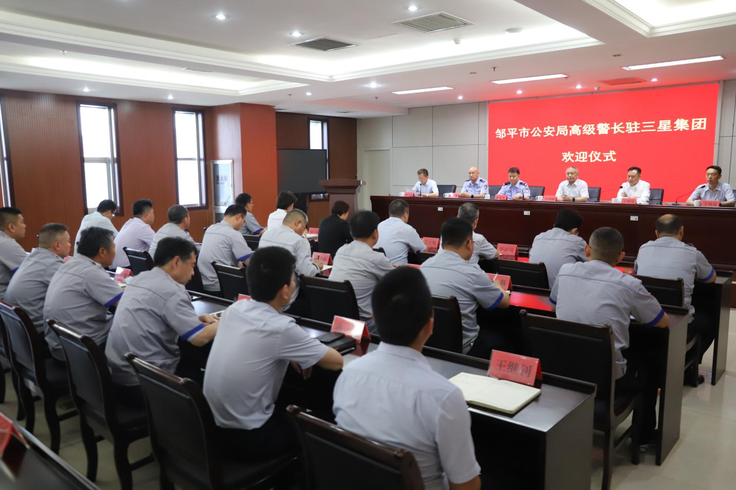 5月25日下午,山東三星集團(tuán)隆重舉行鄒平市公安局高級(jí)警長(zhǎng)駐企歡迎儀式。集團(tuán)黨總支書記王明峰,長(zhǎng)壽花食品董事長(zhǎng)、總經(jīng)理王明星,集團(tuán)常務(wù)副總經(jīng)理王明亮,鄒平市公安局駐企警長(zhǎng),集團(tuán)中層以上干部及業(yè)務(wù)、銷售等有關(guān)工作人員參加活動(dòng)。集團(tuán)副總經(jīng)理韓延庭主持會(huì)議。