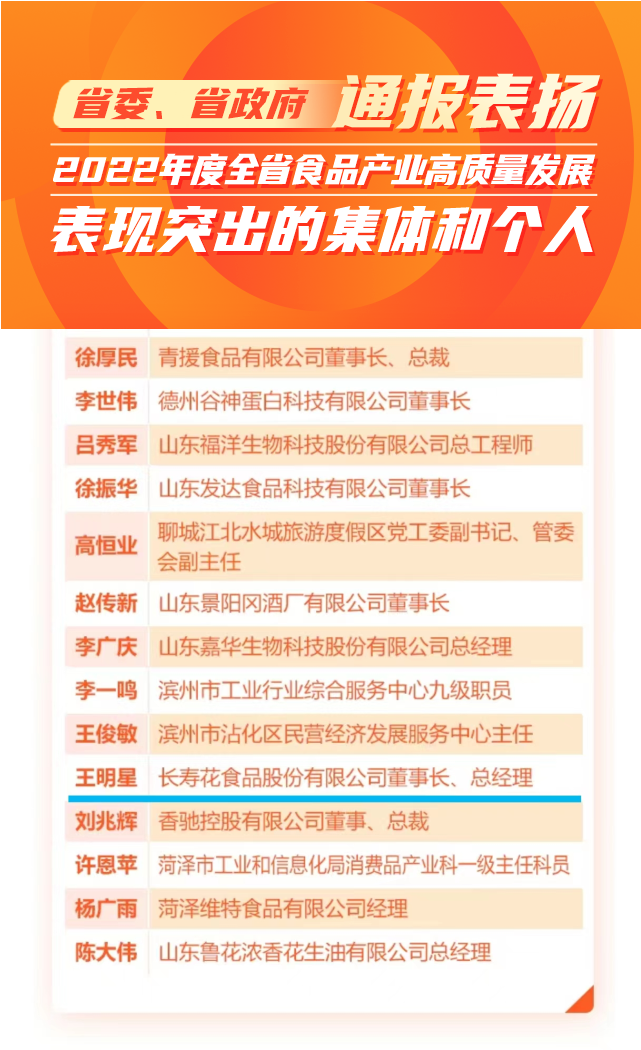 其個(gè)人接續(xù)獲評(píng)中國(guó)營(yíng)養(yǎng)產(chǎn)業(yè)領(lǐng)軍人物、中國(guó)糧油影響力人物、山東省糧油行業(yè)優(yōu)秀企業(yè)家等榮譽(yù)稱號(hào)。