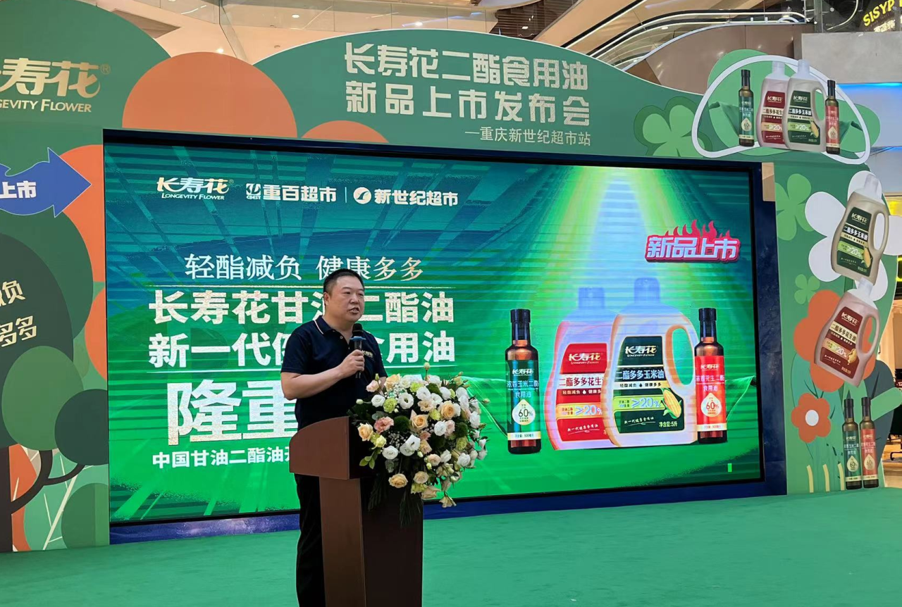 任在順首先致辭,向在場(chǎng)嘉賓介紹了長(zhǎng)壽花戰(zhàn)略新品——甘油二酯油項(xiàng)目的推進(jìn)情況及未來(lái)發(fā)展前景。