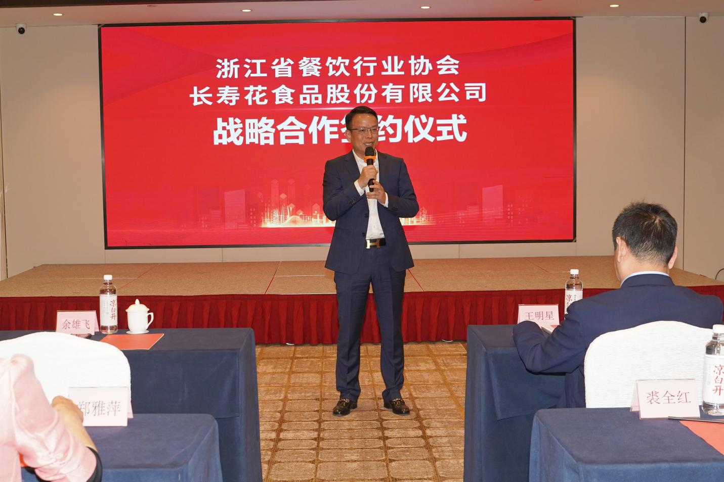 王明星對(duì)浙江省餐飲行業(yè)協(xié)會(huì)為百姓謀求健康、安全、營(yíng)養(yǎng)“舌尖美味”的社會(huì)擔(dān)當(dāng)意識(shí)和龍頭引領(lǐng)作用表示高度贊揚(yáng),并對(duì)其給予長(zhǎng)壽花品牌理念及產(chǎn)品品質(zhì)的充分肯定表示感謝。
