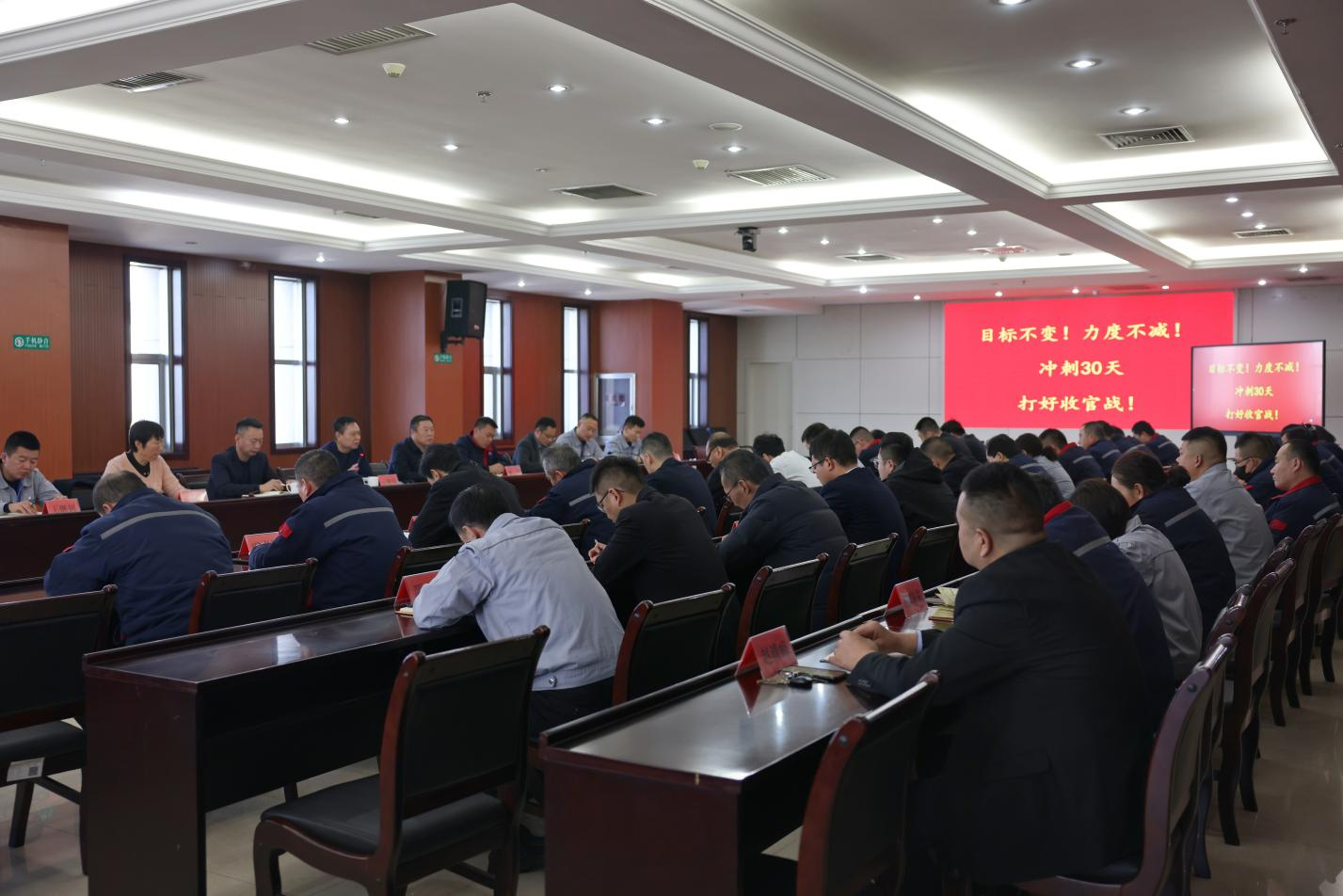 會議要求,目標不變,力度不減,聚焦年度發(fā)展目標,圍繞十二月份怎么干,各單位要進一步補齊短板總結(jié)提升,制定科學高效、切實可行的措施,以安全生產(chǎn)之基,護航企業(yè)穩(wěn)定大局,以質(zhì)量效益之力,保障企業(yè)發(fā)展大局。會后,各單位要立即組織召開擴大會議,迅速傳達會議精神,精心部署貫徹落實,推動各項沖刺工作落實落細,確保年度收官任務圓滿完成。