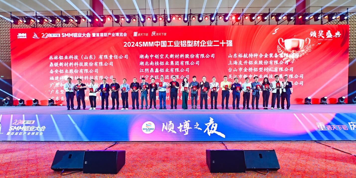 日前,2024年SMM(第十九屆)鋁業(yè)大會(huì)暨鋁產(chǎn)業(yè)博覽會(huì)在重慶舉行,大會(huì)同期舉辦中國(guó)鋁行業(yè)優(yōu)質(zhì)供應(yīng)商頒獎(jiǎng)典禮,隆重表彰了一批創(chuàng)新性強(qiáng)、示范性好的優(yōu)秀鋁行業(yè)代表。憑借雄厚的產(chǎn)業(yè)實(shí)力和過硬的產(chǎn)品質(zhì)量,裕航合金公司連續(xù)三年獲評(píng)“中國(guó)工業(yè)鋁型材企業(yè)二十強(qiáng)”。