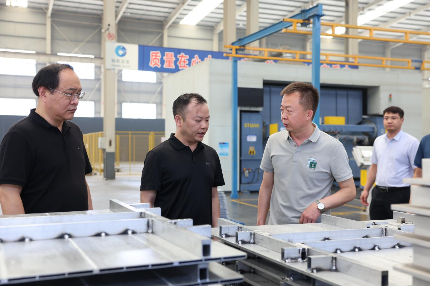 在裕航合金高端鋁精深加工產(chǎn)業(yè)基地,考察團(tuán)實地參觀了裕航合金鋁精深加工生產(chǎn)車間及產(chǎn)品展廳,詳細(xì)了解企業(yè)在鋁精深加工領(lǐng)域的技術(shù)創(chuàng)新、產(chǎn)品研發(fā)、生產(chǎn)流程以及市場應(yīng)用等方面情況。