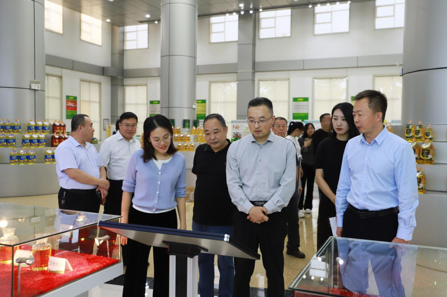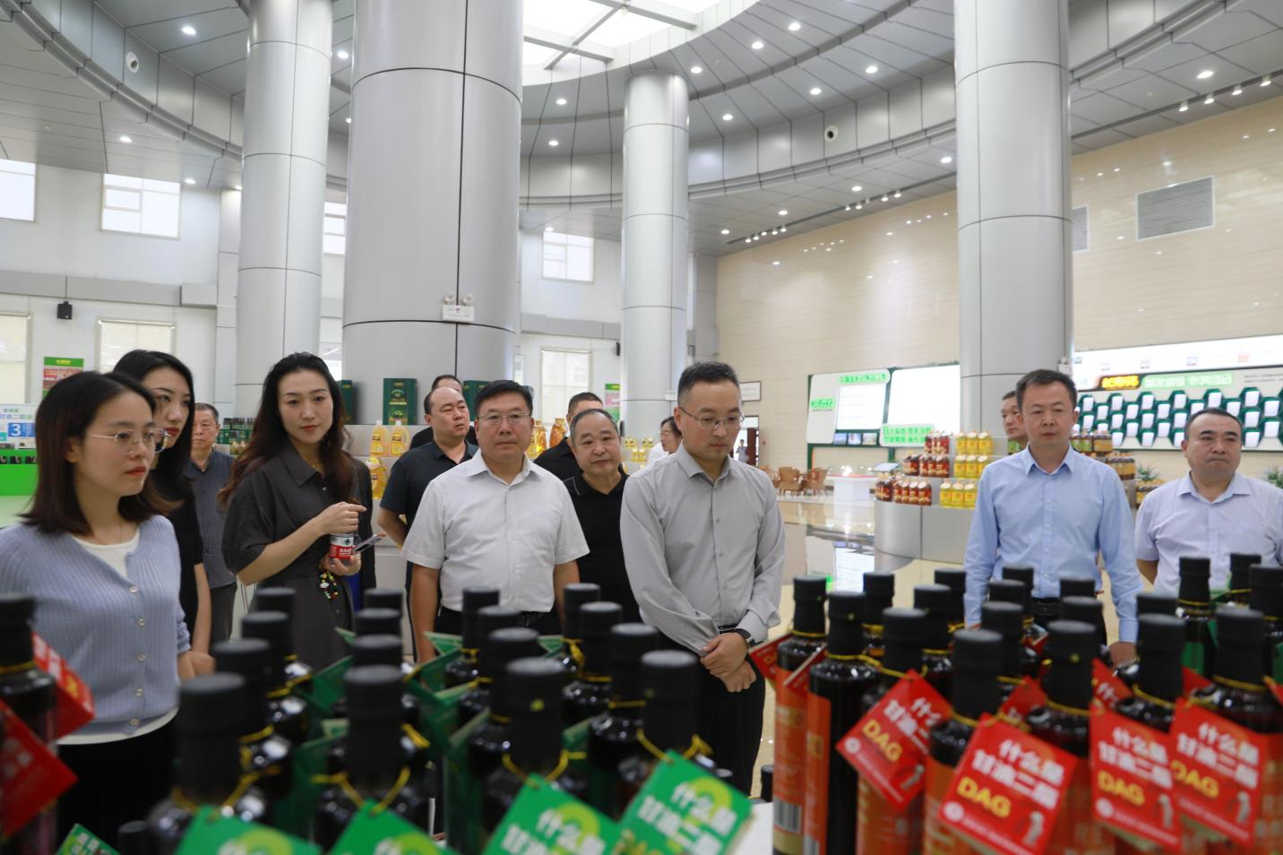 在長壽花綠色產(chǎn)業(yè)基地,來訪領(lǐng)導(dǎo)實地參觀了長壽花產(chǎn)品展廳及全自動灌裝包裝生產(chǎn)車間,認(rèn)真聽取了企業(yè)發(fā)展布局、多元化產(chǎn)品矩陣、科技創(chuàng)新成果轉(zhuǎn)化等情況介紹,與企業(yè)領(lǐng)導(dǎo)就科創(chuàng)賦能高端健康糧油行業(yè)發(fā)展等內(nèi)容進行了深入交流。