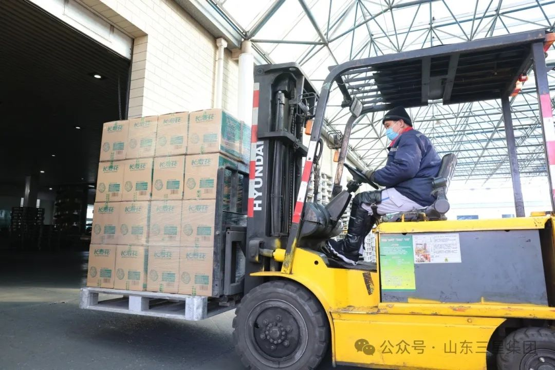 》》在長(zhǎng)壽花食品倉(cāng)儲(chǔ)車間,叉車來(lái)回穿梭,緊鑼密鼓為客戶備貨。