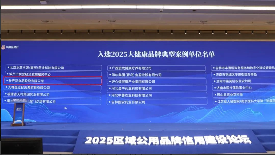 會(huì)上,長壽花食品憑借創(chuàng)新發(fā)展路徑和健康特色屬性,被授予“2025大健康品牌典型案例”。