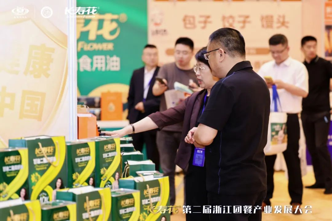 作為浙江團(tuán)餐供應(yīng)鏈的重要一員,長(zhǎng)壽花食品攜甘油二酯食用油系列集群亮相展會(huì),優(yōu)秀的產(chǎn)品品質(zhì)和矚目的健康屬性吸引了眾多與會(huì)嘉賓觀展咨詢。