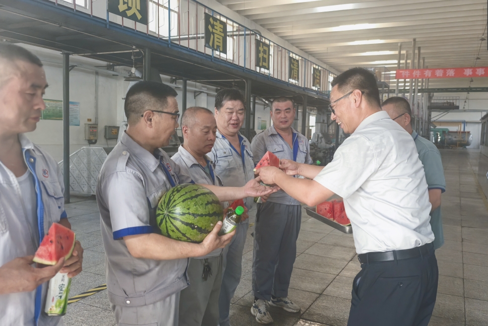一個(gè)個(gè)甘甜多汁的西瓜、一箱箱清涼的飲料送到員工手中,慰問領(lǐng)導(dǎo)與一線員工親切交談,詳細(xì)詢問他們的工作和生活情況,叮囑大家要注意防暑降溫,確保安全與健康。此次慰問活動(dòng),不僅為一線員工送去了夏日的清涼,更傳遞了公司對(duì)員工的殷殷關(guān)懷。員工們紛紛表示,將以更加飽滿的熱情投入到工作中,為公司的發(fā)展貢獻(xiàn)自己的力量。