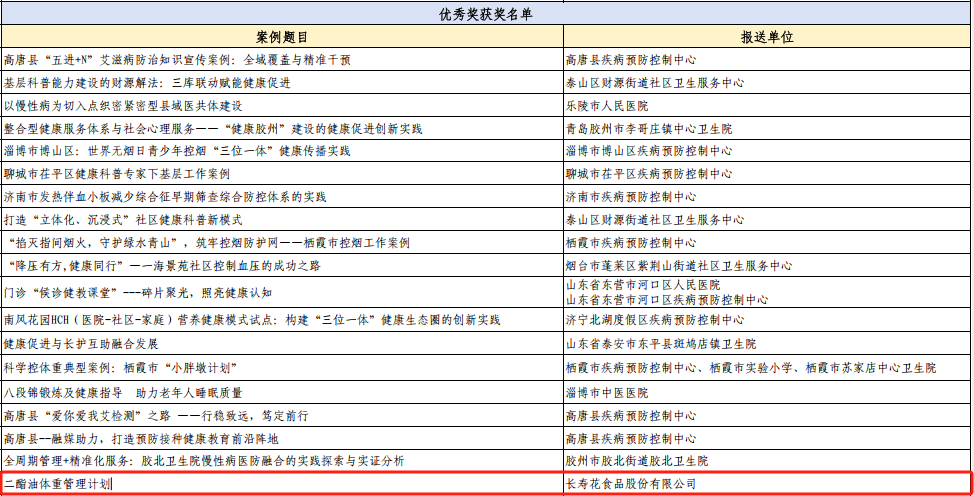 8月2日,第二屆山東省健康促進(jìn)大會(huì)在淄博召開。會(huì)上,長(zhǎng)壽花食品《二酯油體重管理計(jì)劃》案例,憑借其突出的創(chuàng)新性與實(shí)效性,榮獲健康促進(jìn)優(yōu)秀實(shí)踐案例。