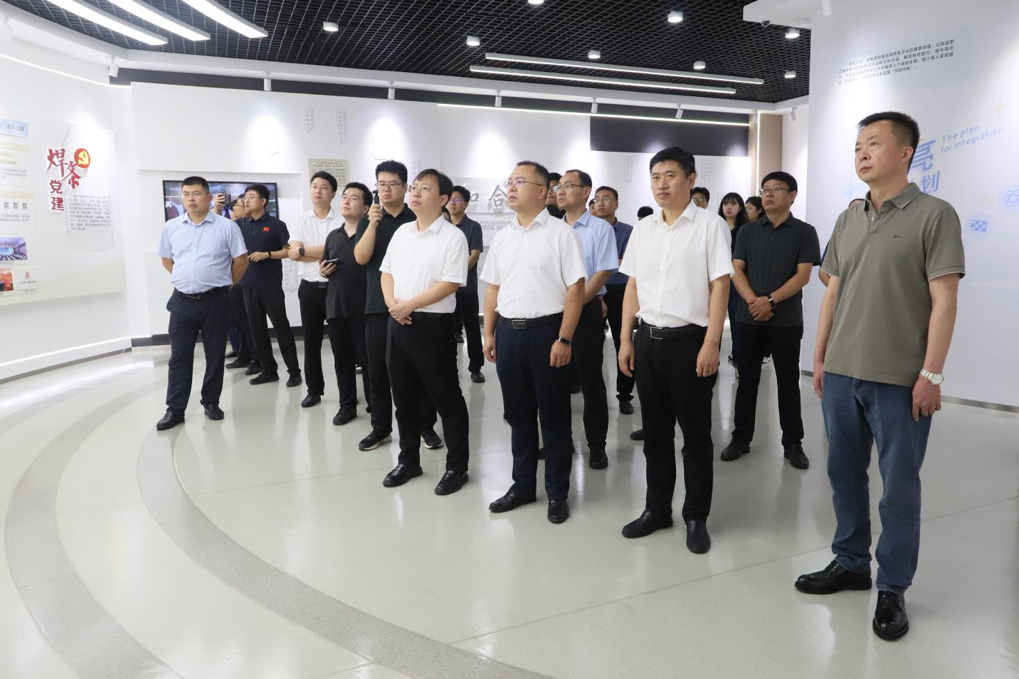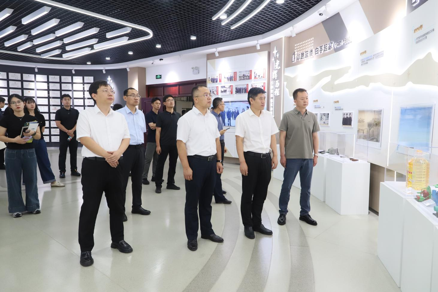 在集團文化中心,調研領導實地參觀了企業(yè)發(fā)展歷程、主導產業(yè)及黨建文化展區(qū),認真聽取了企業(yè)提煉黨建工作理念、熔鑄特色黨建品牌、打造黨建文化陣地的情況介紹,真切感受到企業(yè)“焊條黨建”品牌和“五融雙強”工作體系的強大紅色內核。