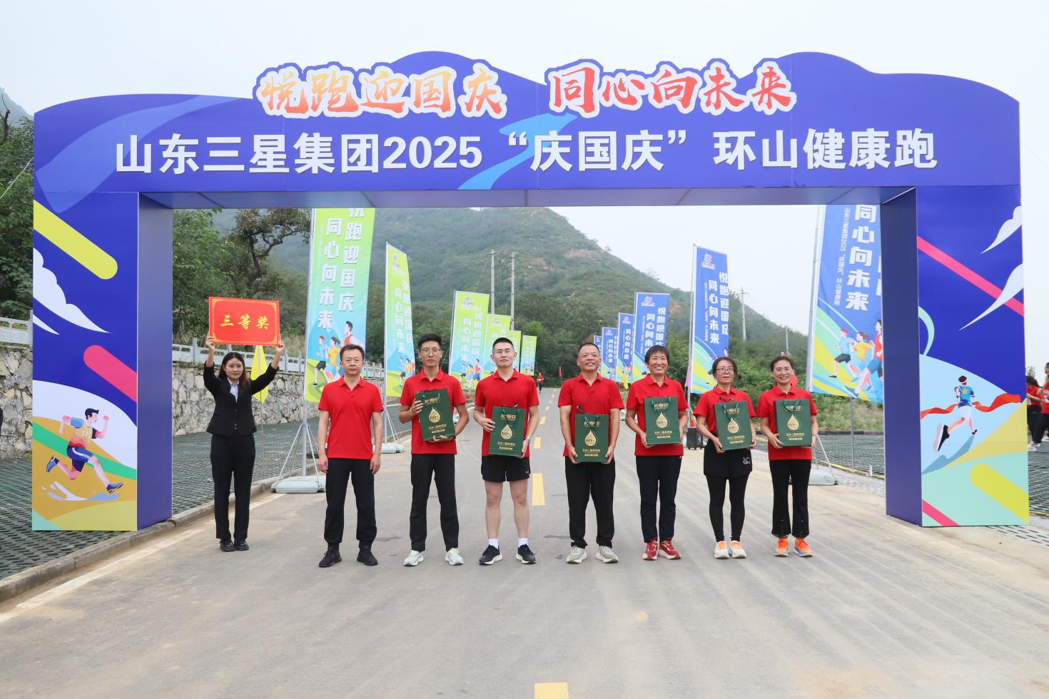 9月27日,在新中國成立76周年之際,山東三星集團(tuán)2025“慶國慶”環(huán)山健康跑活動在鄒平青陽環(huán)山路精彩舉辦。集團(tuán)董事會領(lǐng)導(dǎo),各分公司、各部室中層以上干部,優(yōu)秀員工、崗位能手及一線員工代表等200余人齊聚鄒平最美賽道,馳騁綠水青山,以腳步丈量山河,用奔跑傳遞快樂,在山水間書寫對偉大祖國的深情禮贊。