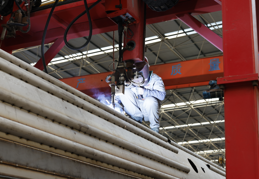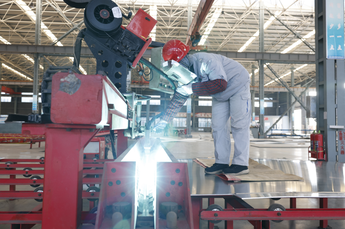 機械的轟鳴聲與耀眼的焊花交織