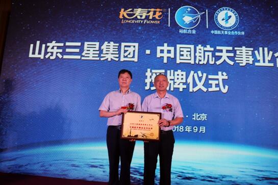 中國航天基金會理事長吳志堅向山東三星集團董事長王明峰授牌