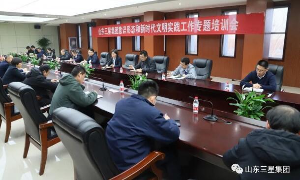 為深入貫徹落實市委宣傳部相關(guān)會議精神,切實推進企業(yè)精神文明建設(shè),12月23日,山東三星集團召開意識形態(tài)和新時代文明實踐工作專題培訓會。山東三星集團副總經(jīng)理孫喜、企宣部經(jīng)理孫穎及各部室、各分公司相關(guān)負責人參加會議。會議由綜合管理部經(jīng)理韓延庭主持。