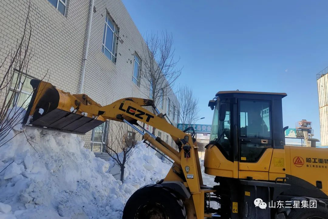 人多,確實力量大。十多個人,分成三組,人人手持雪鏟,按照責(zé)任劃分,在辦公區(qū)、生產(chǎn)區(qū)、生活區(qū)等各個區(qū)域同時推進(jìn)清雪工作。雪鏟上下?lián)]動間,原本一人行的小路很快拓寬成了兩人行、三人行的大道。為了進(jìn)一步提高清雪效率,馬光海還與設(shè)備技術(shù)科長張玉民輪流開動自備鏟車,園區(qū)也安排大鏟車趕來增援。機械推雪打通前陣,人工輪流鏟雪除冰,協(xié)同作業(yè),鏖戰(zhàn)九日,通遼三星終于剝落雪被,重現(xiàn)本色。