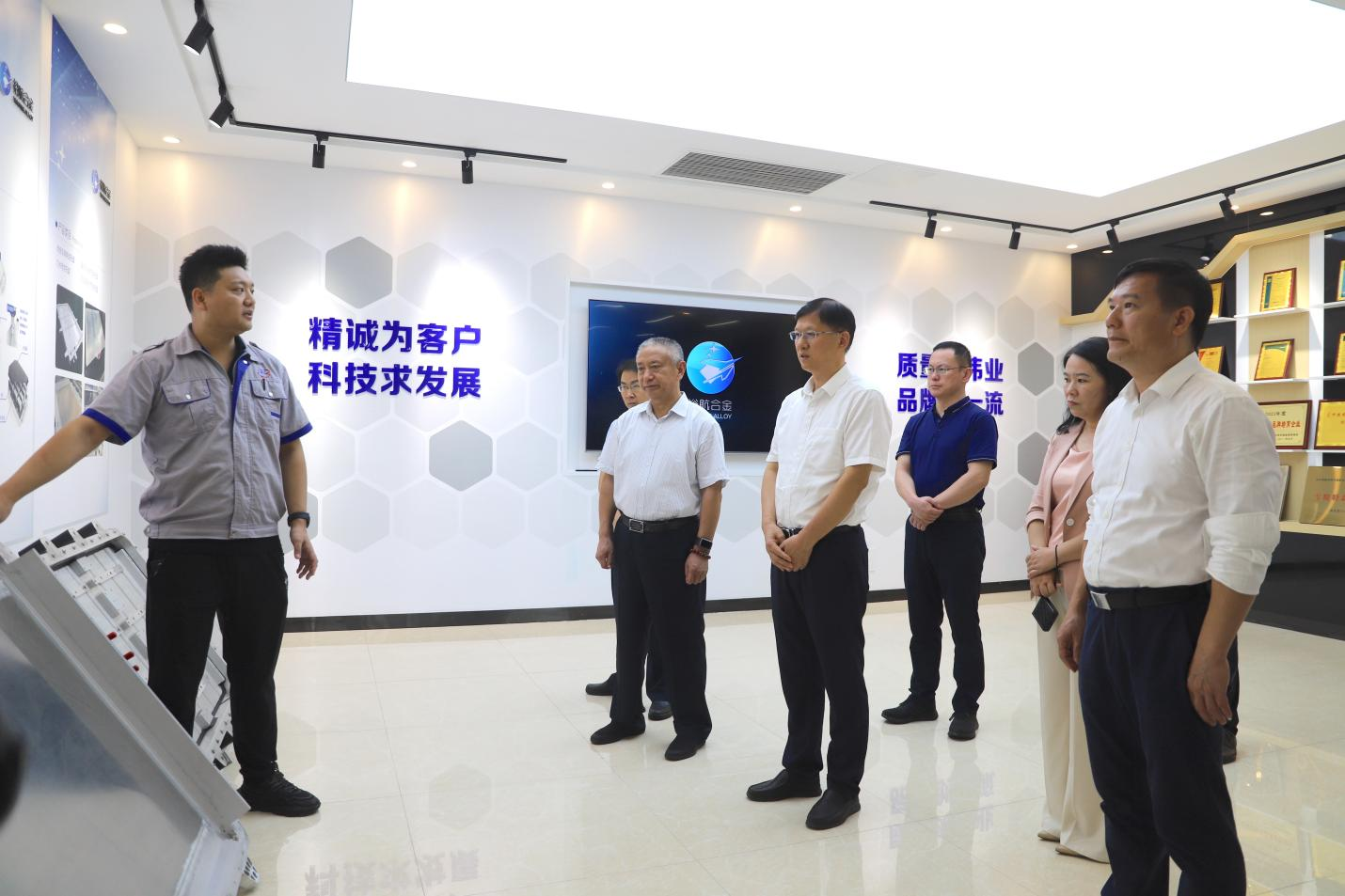 在裕航合金鋁精深加工生產(chǎn)基地,考察領(lǐng)導(dǎo)詳細(xì)了解公司高端新型鋁材創(chuàng)新研發(fā)、產(chǎn)業(yè)運營、產(chǎn)品應(yīng)用情況,并深入生產(chǎn)車間實地考察,就鋁產(chǎn)業(yè)鏈高精尖延伸、鋁工業(yè)高質(zhì)量發(fā)展與王明峰進(jìn)行了深入交流。