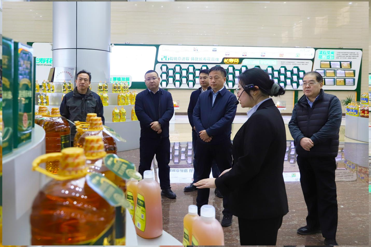 在長壽花食品綠色生產(chǎn)基地,考察領(lǐng)導(dǎo)實(shí)地參觀了產(chǎn)品展廳和全自動(dòng)灌裝包裝生產(chǎn)車間,認(rèn)真聽取了企業(yè)聚焦糧油產(chǎn)業(yè)提檔升級(jí),堅(jiān)持科技創(chuàng)新驅(qū)動(dòng),不斷改進(jìn)生產(chǎn)工藝、研發(fā)糧油新品、深化產(chǎn)學(xué)研合作、促進(jìn)創(chuàng)新成果轉(zhuǎn)化的相關(guān)工作情況介紹。